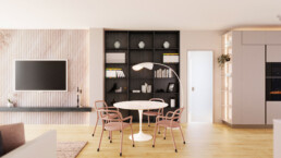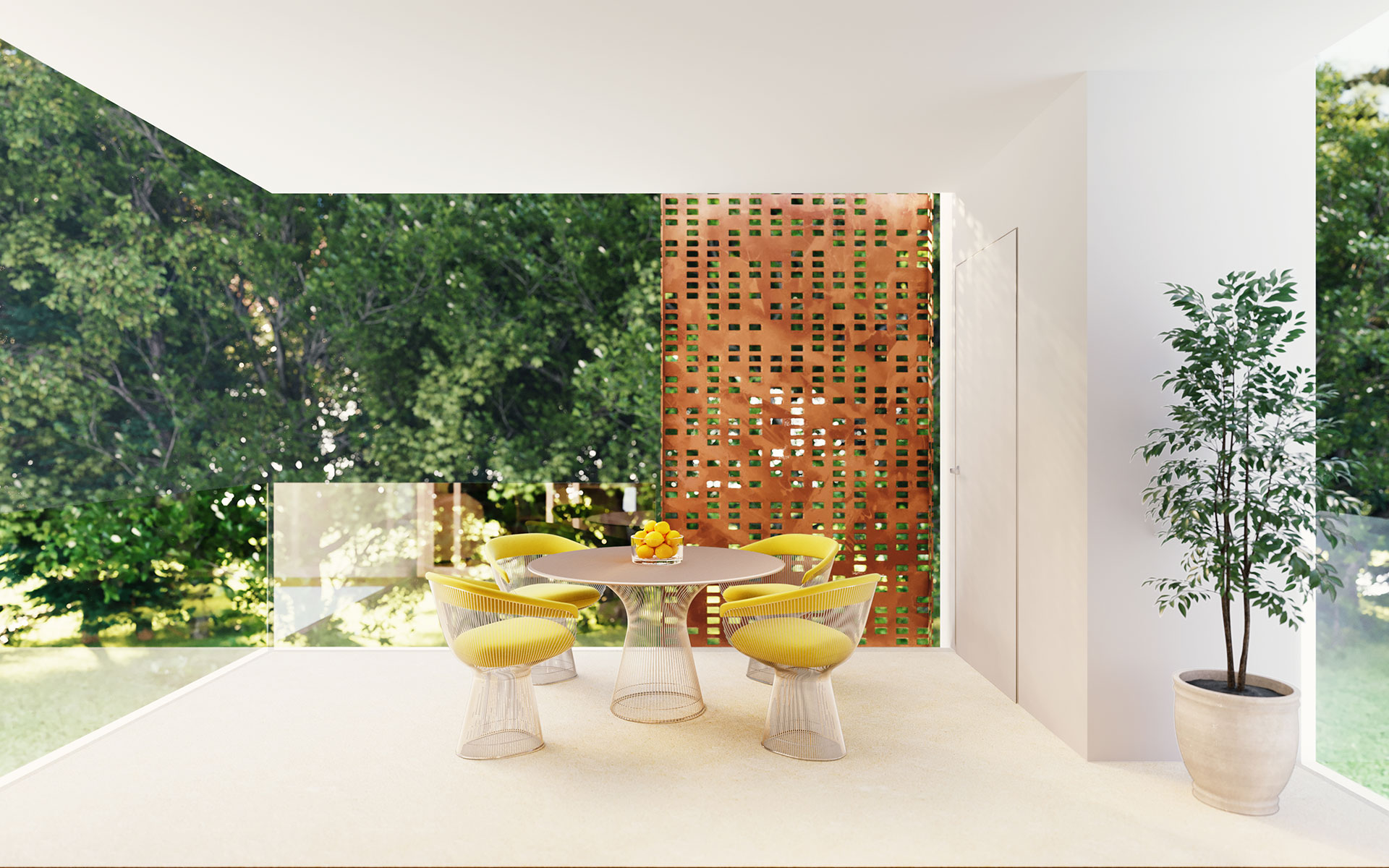 In questo processo un ruolo da protagonista è ricoperto dalle numerose aperture verso l’esterno che permetto la vista di scorci naturali sempre diversi e mutevoli con il processo naturale delle stagioni, le ampie vetrate valorizzano il dialogo con l’ambiente esterno, rendendo gli spazi ariosi, luminosi e amplificandone la spazialità.