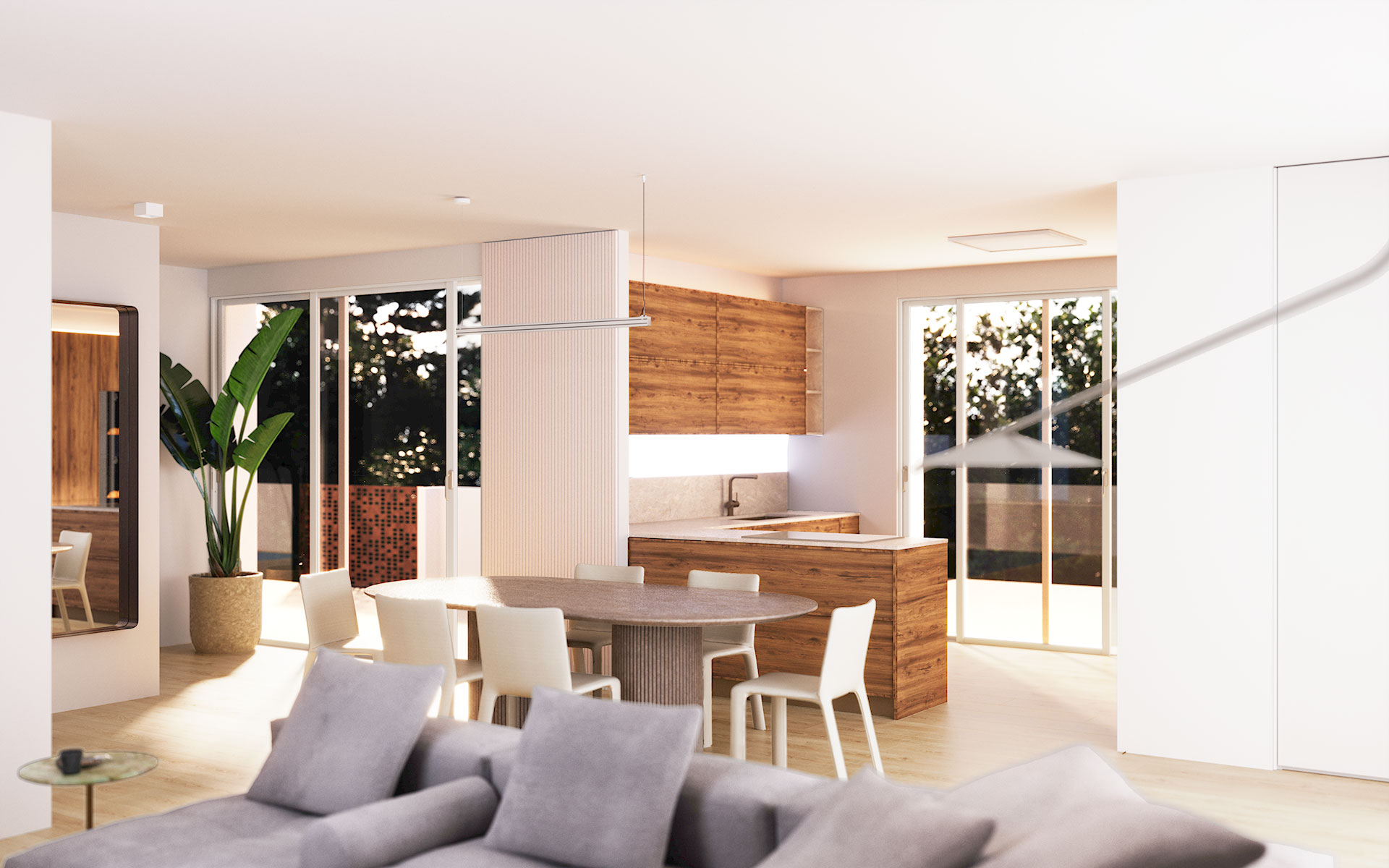 La progettazione ha affrontato le diverse sfide che l’abitare di oggi comporta soprattutto nell’ambito della sostenibilità, avendo cura di realizzare un edificio riconoscibile, ma che al contempo fosse sensibile alle caratteristiche urbane del sito in cui si colloca. Il progetto è stato concepito con la chiara scelta della preservazione dello spazio verde esterno dei giardini privati in simbiosi con quelli pubblici circostanti in un dialogo virtuoso.