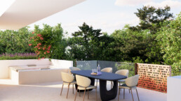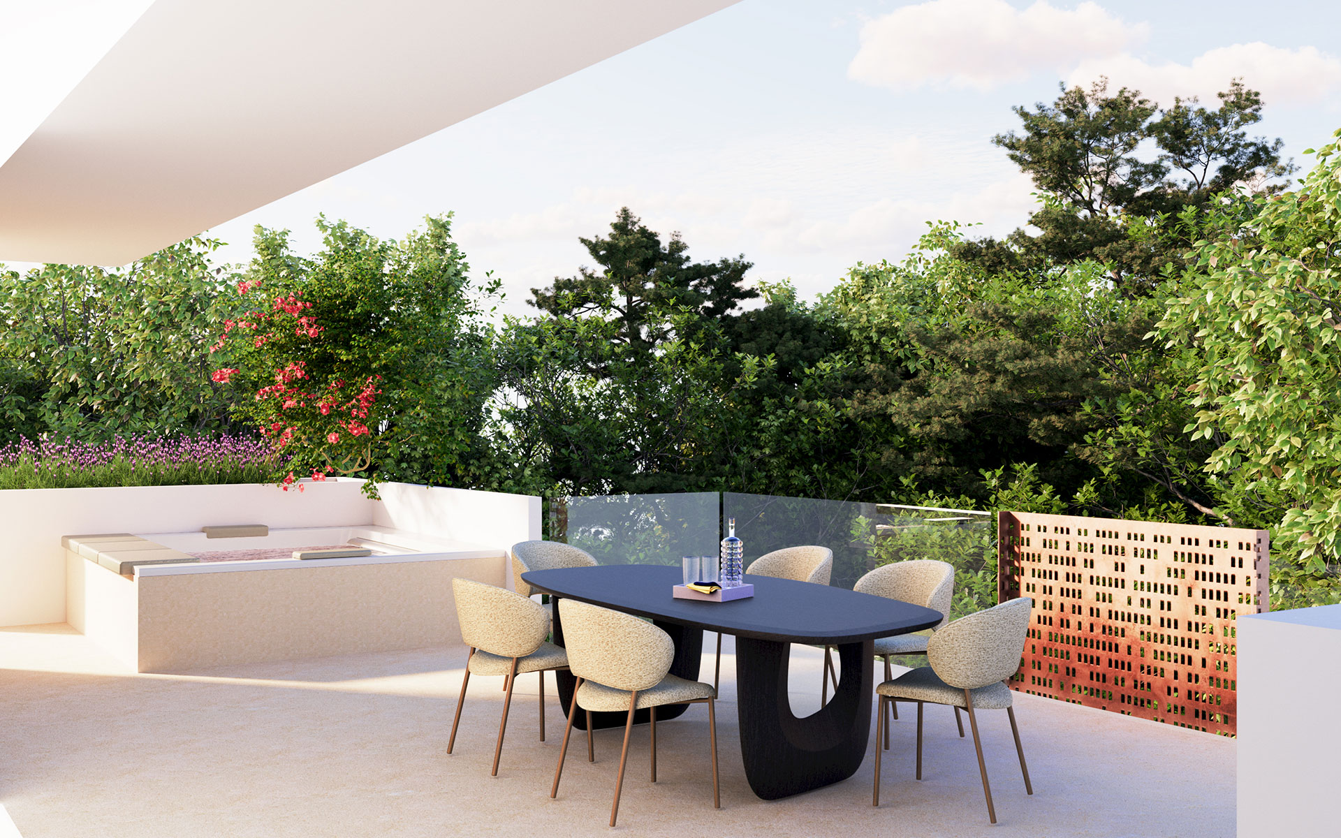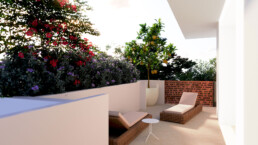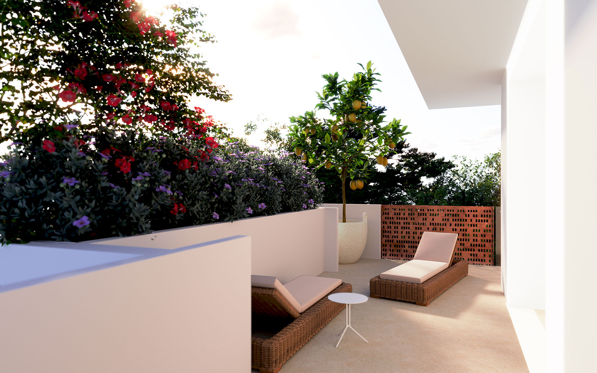 Il nuovo edificio oltre ai grandi giardini privati al pian terreno, offre grazie agli ampi terrazzi, la possibilità di dedicare porzioni degli stessi alla piantumazione di essenze vegetali che nel loro insieme posso costituire dei fronti “verdi” di qualità e benessere che oltre l’indiscutibile pregio estetico, mirano a far diventare l’edificio un hotspot di biodiversità all’interno del tessuto urbano densamente urbanizzato, incrementando il valore ambientale del luogo.