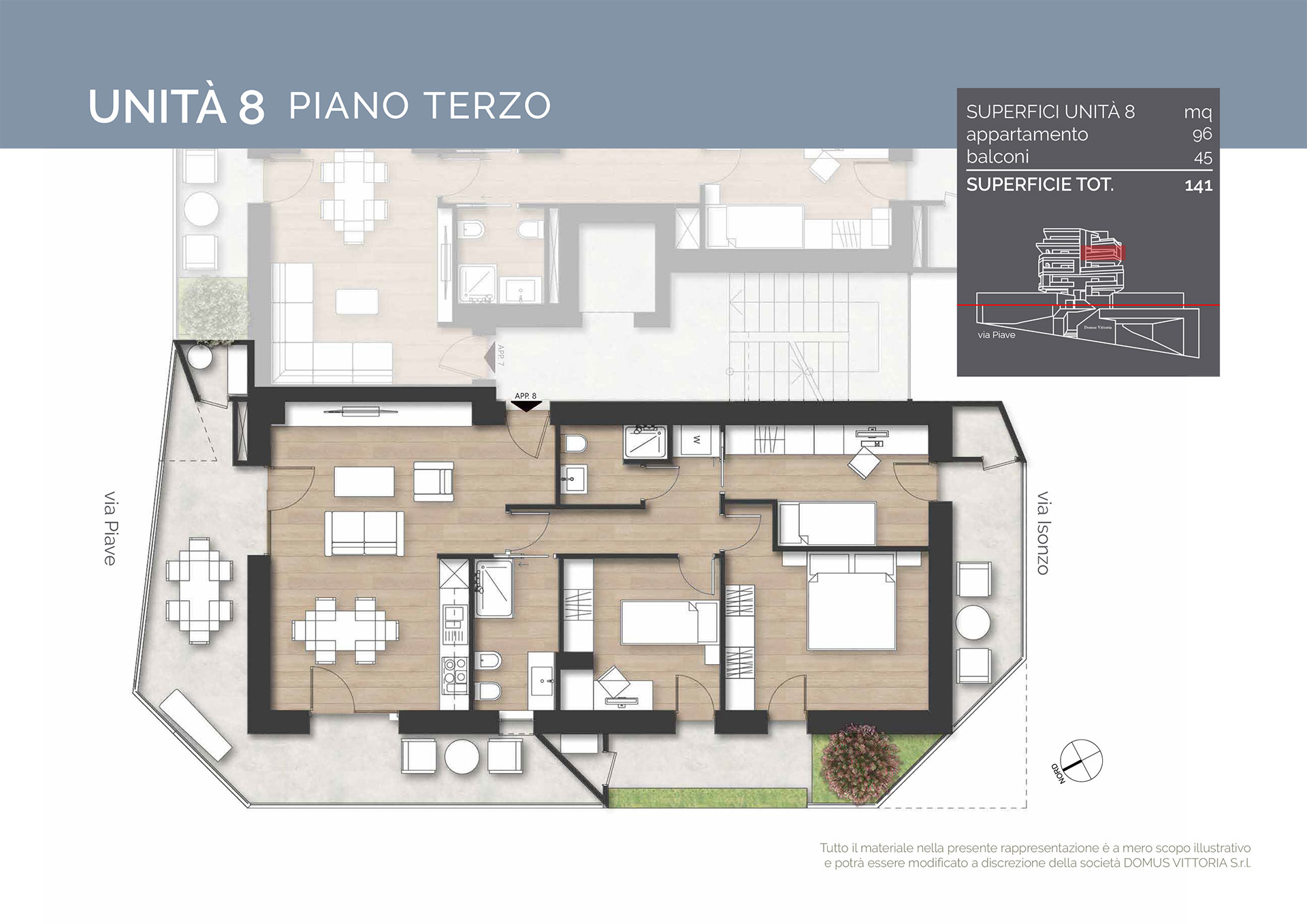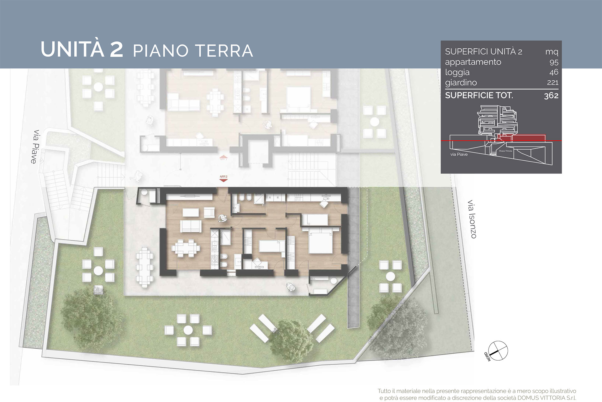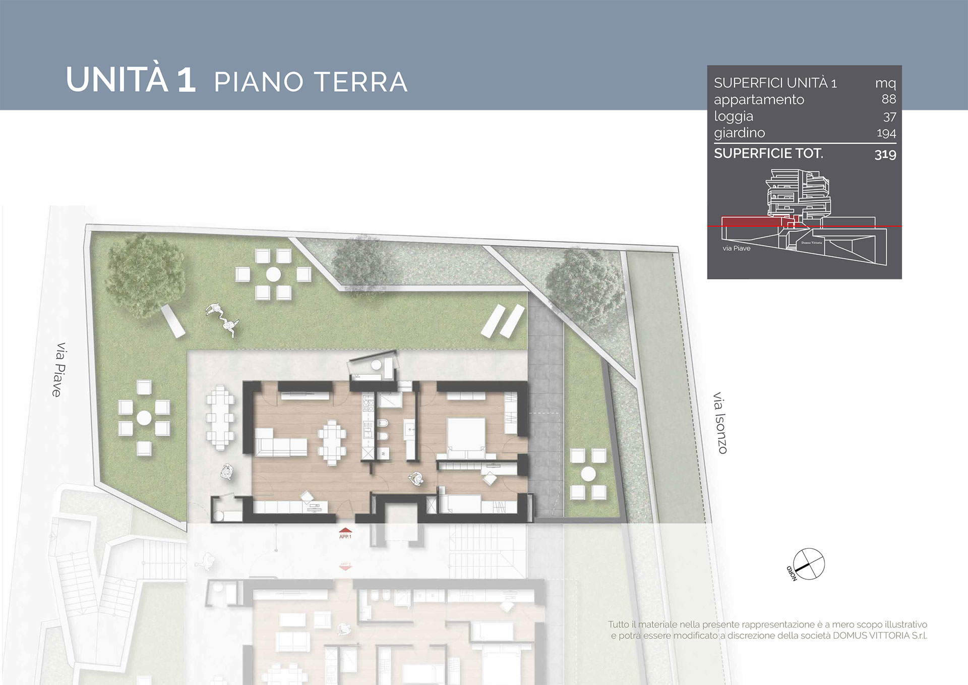 Il progetto Domus Vittoria recupera un vecchio fabbricato convertito a struttura sanitaria privata, ripristinandone il carattere originale del tipo villa con giardino, praticamente un unicum nel contesto di via Piave e via Isonzo.