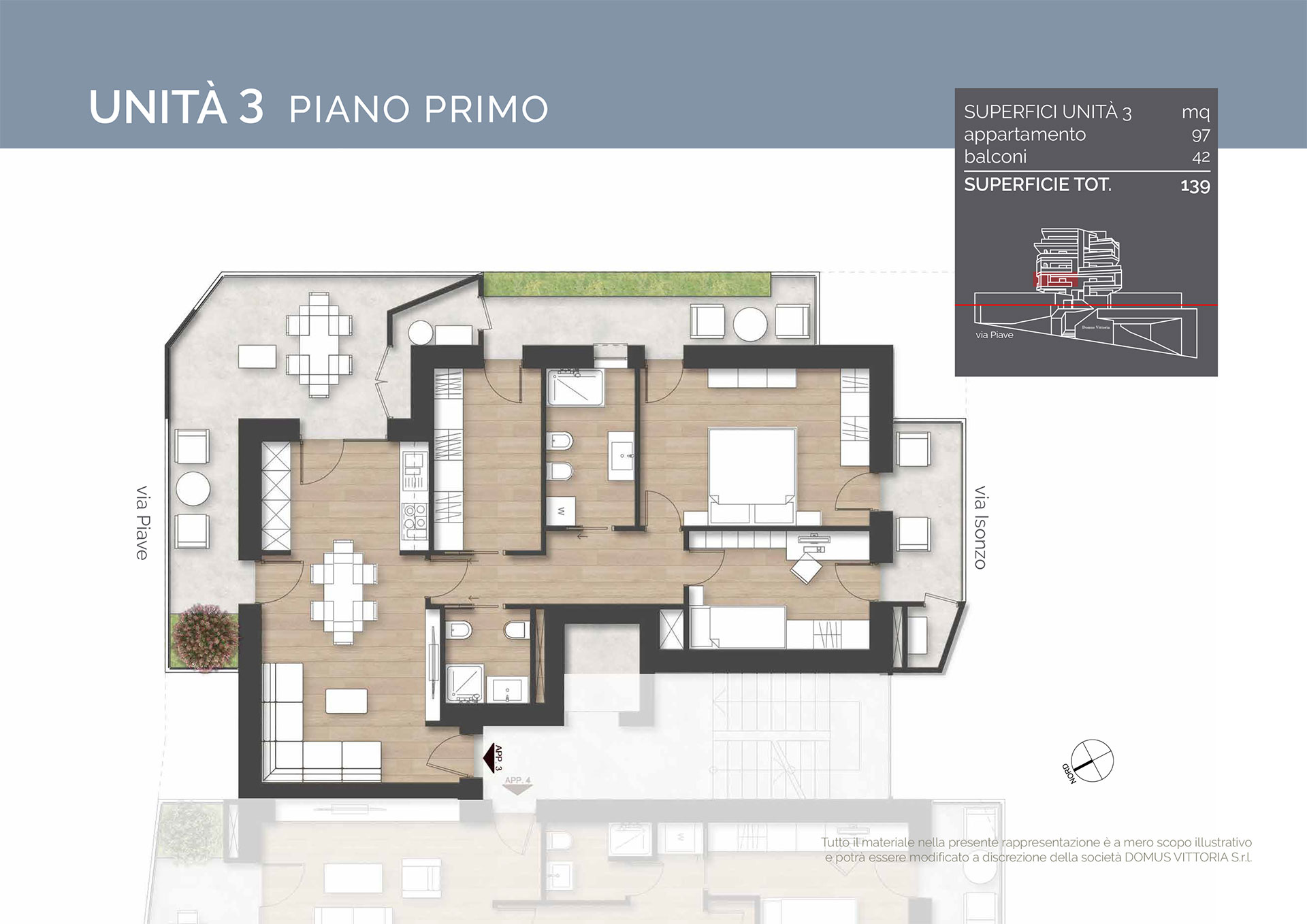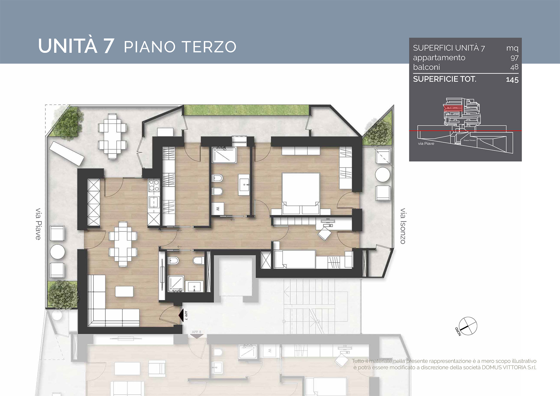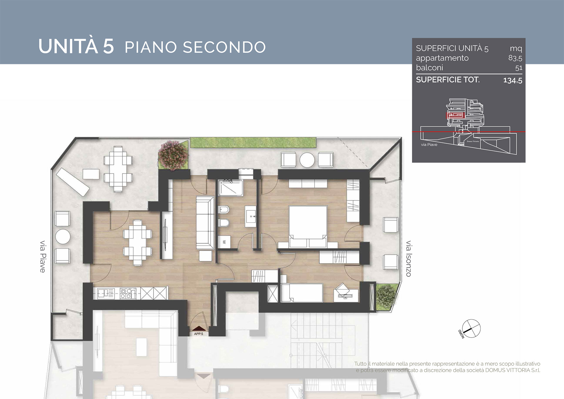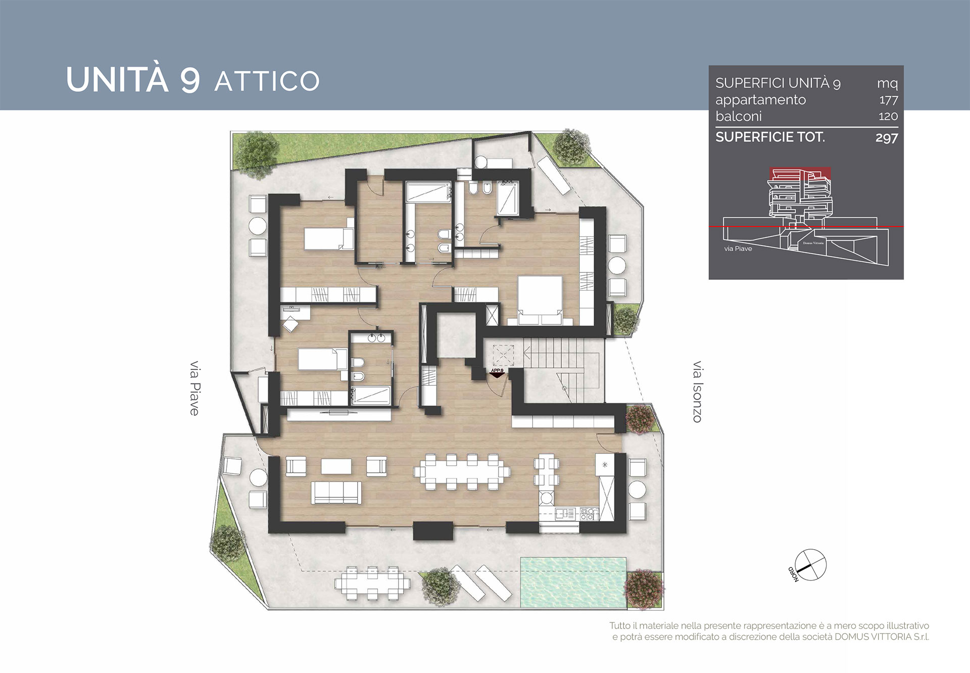 Il progetto Domus Vittoria recupera un vecchio fabbricato convertito a struttura sanitaria privata, ripristinandone il carattere originale del tipo villa con giardino, praticamente un unicum nel contesto di via Piave e via Isonzo.